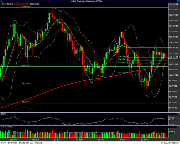 No semanal a região dos 112 mil pontos ganha destaque. Talvez até mais do que a dos 114k, que é a nossa grande barreira.