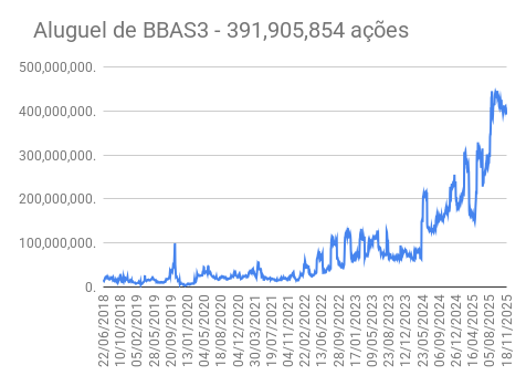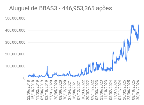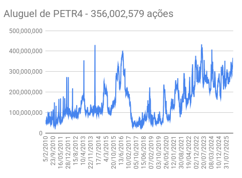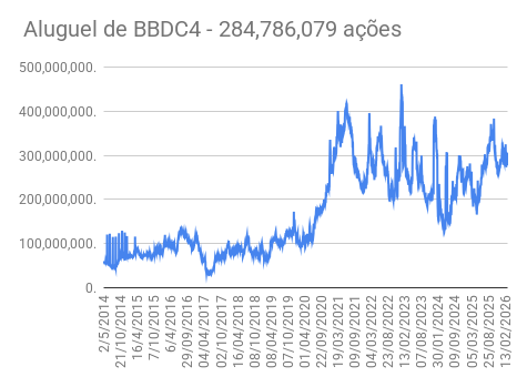 Este é um dado que acompanho diariamente, serve para que eu veja o “peso” extra que existe sobre estas ações. Normalmente – veja bem, normalmente … – um aumento na posição alugada pode significar um movimento de queda no papel. E o contrário também é verdadeiro, uma cobertura pode significar um movimento de alta.