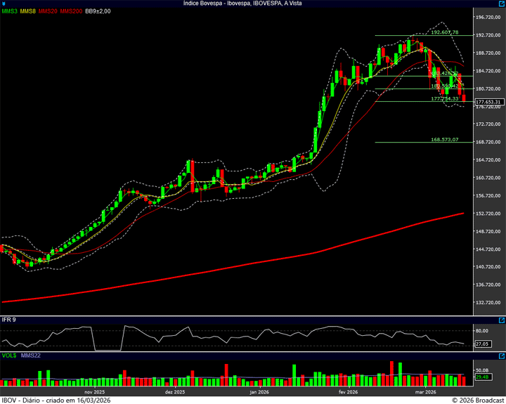 Região de suporte: 165k ou o alvo do pivot em criação, 168.500 pontos