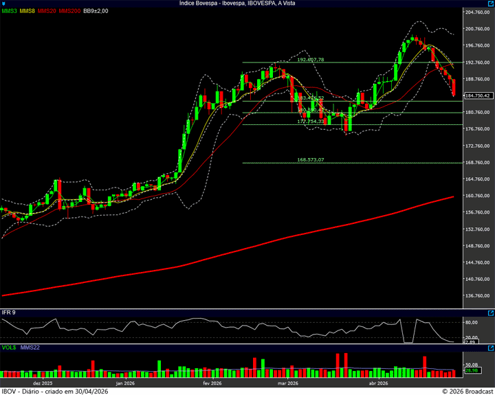 Suporte no 180.900/177.500 pontos. (com tendência viva enquanto estivermos acima dos 175k)