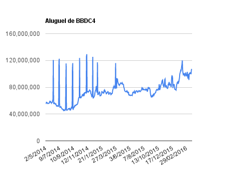 Este é um dado que acompanho diariamente, serve para que eu veja o “peso” extra que existe sobre estas ações. Normalmente – veja bem, normalmente … – um aumento na posição alugada pode significar um movimento de queda no papel. E o contrário também é verdadeiro, uma cobertura pode significar um movimento de alta.