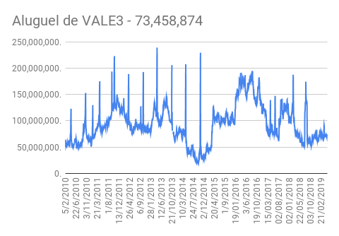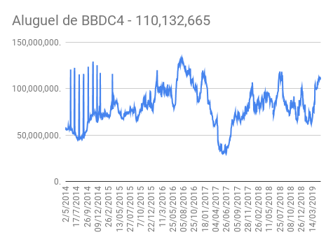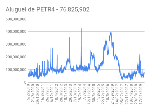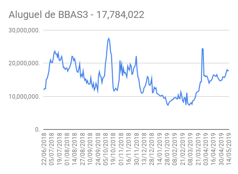 Este é um dado que acompanho diariamente, serve para que eu veja o “peso” extra que existe sobre estas ações. Normalmente – veja bem, normalmente … – um aumento na posição alugada pode significar um movimento de queda no papel. E o contrário também é verdadeiro, uma cobertura pode significar um movimento de alta.