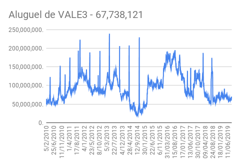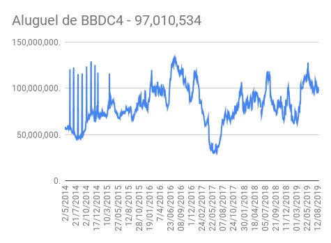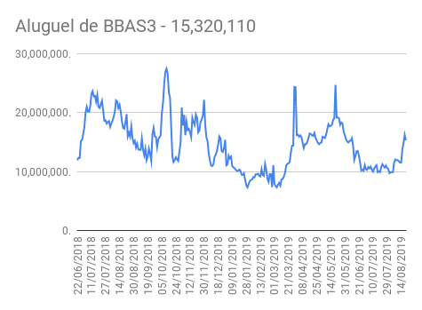 Este é um dado que acompanho diariamente, serve para que eu veja o “peso” extra que existe sobre estas ações. Normalmente – veja bem, normalmente … – um aumento na posição alugada pode significar um movimento de queda no papel. E o contrário também é verdadeiro, uma cobertura pode significar um movimento de alta.