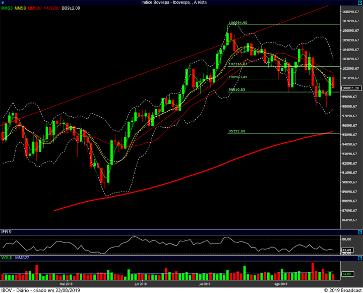 Suporte nos 99.600 e nos 98k. Resistência nos 101k.
