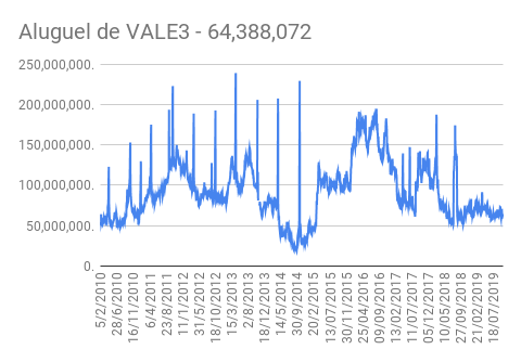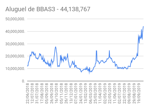 Este é um dado que acompanho diariamente, serve para que eu veja o “peso” extra que existe sobre estas ações. Normalmente – veja bem, normalmente … – um aumento na posição alugada pode significar um movimento de queda no papel. E o contrário também é verdadeiro, uma cobertura pode significar um movimento de alta.