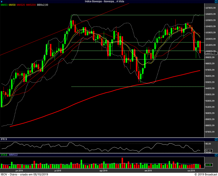 Suporte na região dos 100k. Resistência na casa dos 102.600.