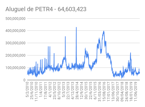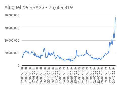 Este é um dado que acompanho diariamente, serve para que eu veja o “peso” extra que existe sobre estas ações. Normalmente – veja bem, normalmente … – um aumento na posição alugada pode significar um movimento de queda no papel. E o contrário também é verdadeiro, uma cobertura pode significar um movimento de alta.