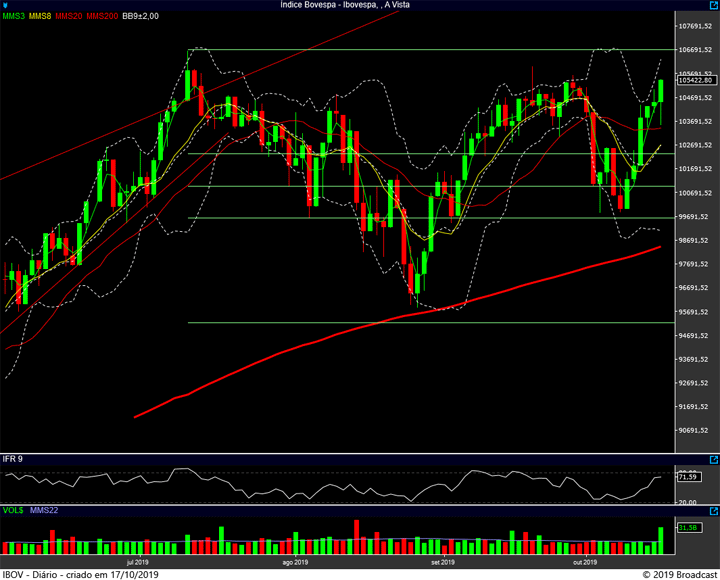 É … o mais provável é que veremos hoje uma ENORME expectativa em relação ao teste, ou não, da região dos 106 mil pontos do Ibovespa, quem sabe até mesmo chegando ao topo histórico.
