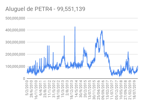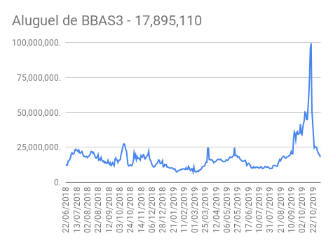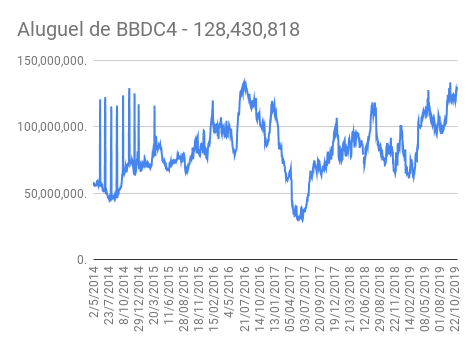Este é um dado que acompanho diariamente, serve para que eu veja o “peso” extra que existe sobre estas ações. Normalmente – veja bem, normalmente … – um aumento na posição alugada pode significar um movimento de queda no papel. E o contrário também é verdadeiro, uma cobertura pode significar um movimento de alta.