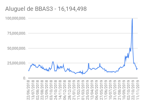 Este é um dado que acompanho diariamente, serve para que eu veja o “peso” extra que existe sobre estas ações. Normalmente – veja bem, normalmente … – um aumento na posição alugada pode significar um movimento de queda no papel. E o contrário também é verdadeiro, uma cobertura pode significar um movimento de alta.