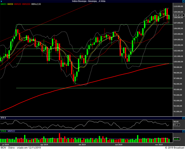 Sim ! O Ibovespa bateu no suporte (106.813 para ser mais exato) e começou a recuperação. Com indicadores intraday socados, encontrou espaço para embalar uma altinha, uma correção da queda de sexta-feira.