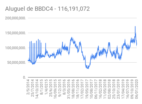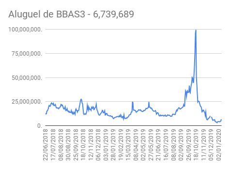 Este é um dado que acompanho diariamente, serve para que eu veja o “peso” extra que existe sobre estas ações. Normalmente – veja bem, normalmente … – um aumento na posição alugada pode significar um movimento de queda no papel. E o contrário também é verdadeiro, uma cobertura pode significar um movimento de alta.