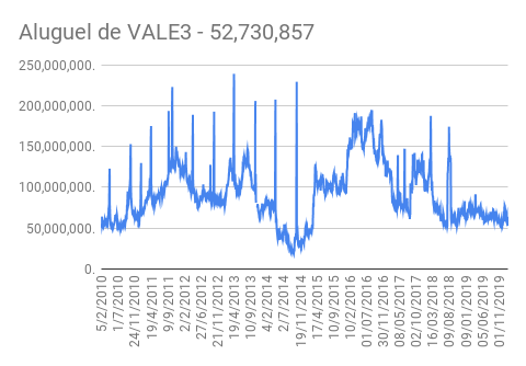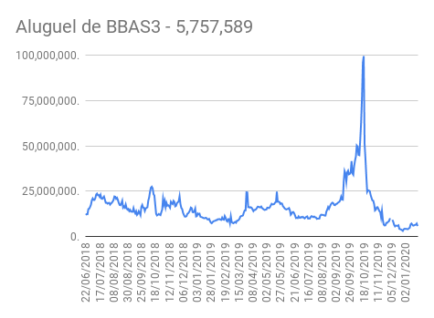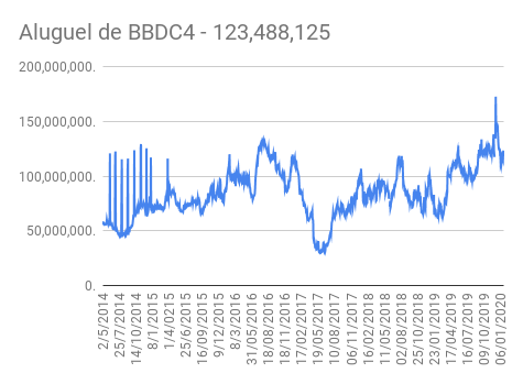 Este é um dado que acompanho diariamente, serve para que eu veja o “peso” extra que existe sobre estas ações. Normalmente – veja bem, normalmente … – um aumento na posição alugada pode significar um movimento de queda no papel. E o contrário também é verdadeiro, uma cobertura pode significar um movimento de alta.