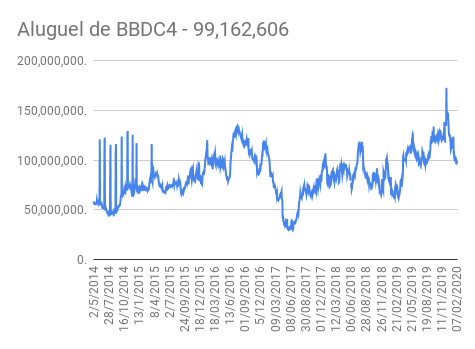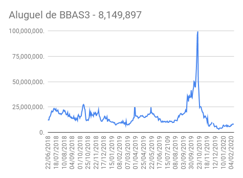 Este é um dado que acompanho diariamente, serve para que eu veja o “peso” extra que existe sobre estas ações. Normalmente – veja bem, normalmente … – um aumento na posição alugada pode significar um movimento de queda no papel. E o contrário também é verdadeiro, uma cobertura pode significar um movimento de alta.