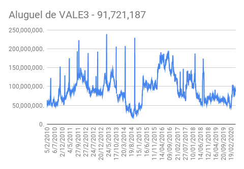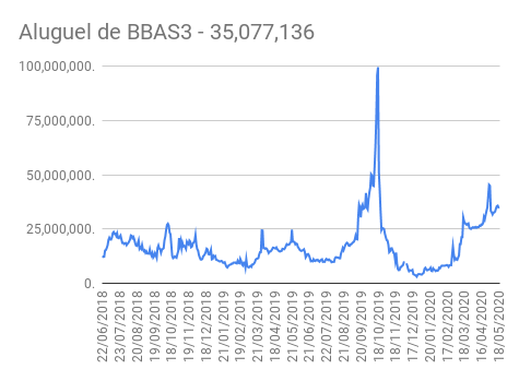 Este é um dado que acompanho diariamente, serve para que eu veja o “peso” extra que existe sobre estas ações. Normalmente – veja bem, normalmente … – um aumento na posição alugada pode significar um movimento de queda no papel. E o contrário também é verdadeiro, uma cobertura pode significar um movimento de alta.