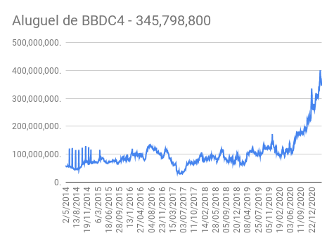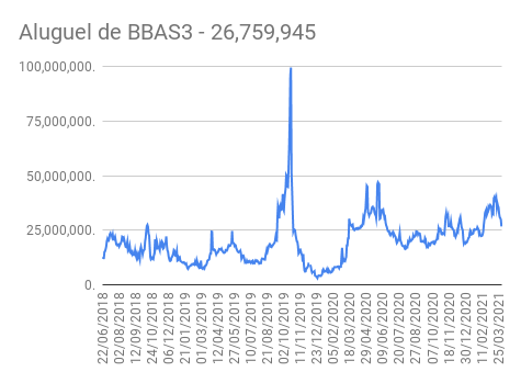 Este é um dado que acompanho diariamente, serve para que eu veja o “peso” extra que existe sobre estas ações. Normalmente – veja bem, normalmente … – um aumento na posição alugada pode significar um movimento de queda no papel. E o contrário também é verdadeiro, uma cobertura pode significar um movimento de alta.