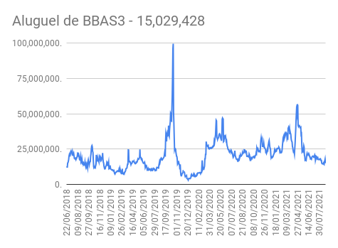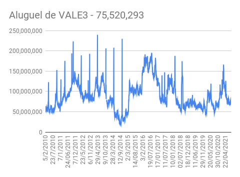 Este é um dado que acompanho diariamente, serve para que eu veja o “peso” extra que existe sobre estas ações. Normalmente – veja bem, normalmente … – um aumento na posição alugada pode significar um movimento de queda no papel. E o contrário também é verdadeiro, uma cobertura pode significar um movimento de alta.