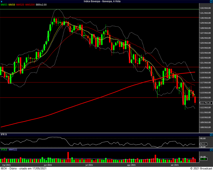 Portanto, neste momento, para que a alta seja retomada, precisamos romper a região dos 117.300 pontos. É a grande “barreira” atual.