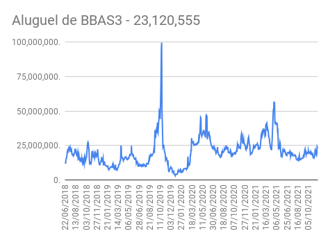 Este é um dado que acompanho diariamente, serve para que eu veja o “peso” extra que existe sobre estas ações. Normalmente – veja bem, normalmente … – um aumento na posição alugada pode significar um movimento de queda no papel. E o contrário também é verdadeiro, uma cobertura pode significar um movimento de alta.