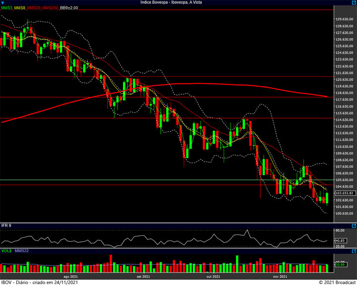Lembra ? Suporte na região dos 102 mil pontos, e resistência nos 103.750/104 mil … Enquanto não romper uma das duas, estamos lateralizados, presos dentro dessa janela.