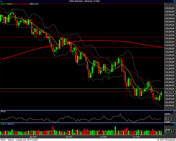 Suporte nos 104k e resistência nos 105.200 pontos. De olho ! 🙂