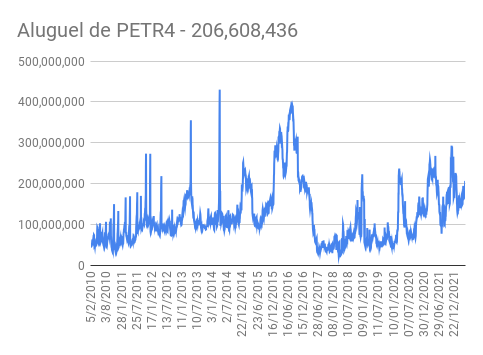 Este é um dado que acompanho diariamente, serve para que eu veja o “peso” extra que existe sobre estas ações. Normalmente – veja bem, normalmente … – um aumento na posição alugada pode significar um movimento de queda no papel. E o contrário também é verdadeiro, uma cobertura pode significar um movimento de alta.