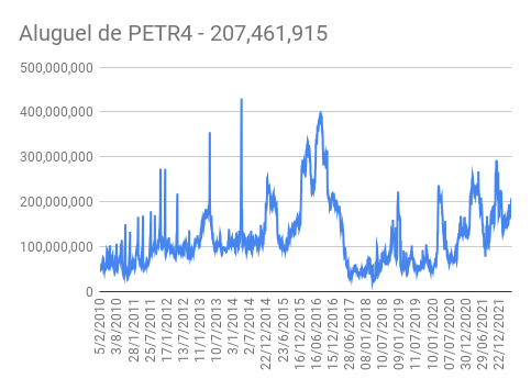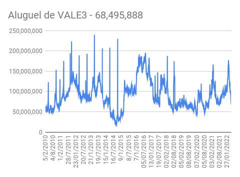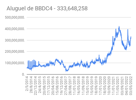Este é um dado que acompanho diariamente, serve para que eu veja o “peso” extra que existe sobre estas ações. Normalmente – veja bem, normalmente … – um aumento na posição alugada pode significar um movimento de queda no papel. E o contrário também é verdadeiro, uma cobertura pode significar um movimento de alta.
