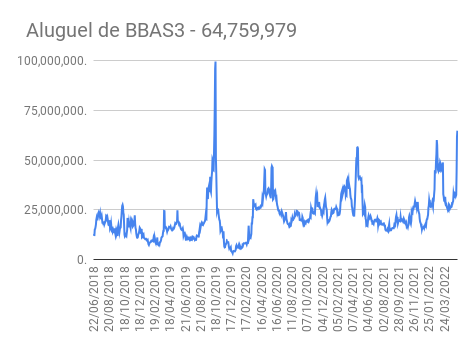 Este é um dado que acompanho diariamente, serve para que eu veja o “peso” extra que existe sobre estas ações. Normalmente – veja bem, normalmente … – um aumento na posição alugada pode significar um movimento de queda no papel. E o contrário também é verdadeiro, uma cobertura pode significar um movimento de alta.