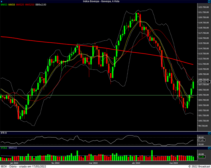 Pois bem: de olho no próximo passo do Sr Mercado ! O 108.400 pontos do Ibovespa é a marca que nos separa da retomada da alta.