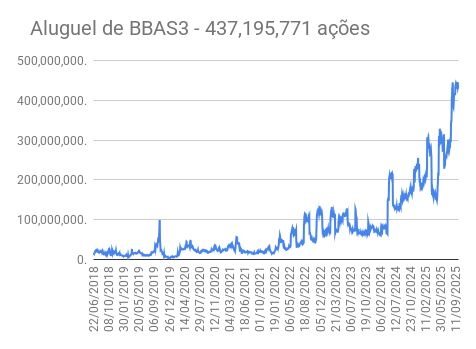 Este é um dado que acompanho diariamente, serve para que eu veja o “peso” extra que existe sobre estas ações. Normalmente – veja bem, normalmente … – um aumento na posição alugada pode significar um movimento de queda no papel. E o contrário também é verdadeiro, uma cobertura pode significar um movimento de alta.
