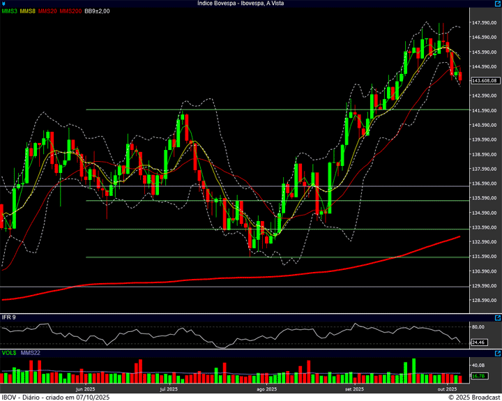 Lembrando os outros números: suporte no 141.500 e resistência no 147.600 pontos.