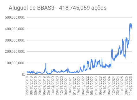 Este é um dado que acompanho diariamente, serve para que eu veja o “peso” extra que existe sobre estas ações. Normalmente – veja bem, normalmente … – um aumento na posição alugada pode significar um movimento de queda no papel. E o contrário também é verdadeiro, uma cobertura pode significar um movimento de alta.