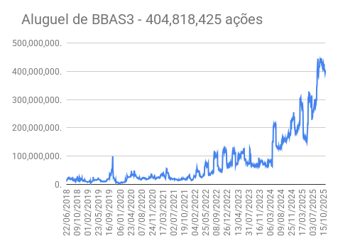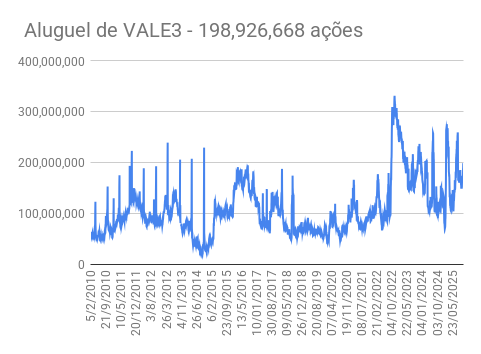 Este é um dado que acompanho diariamente, serve para que eu veja o “peso” extra que existe sobre estas ações. Normalmente – veja bem, normalmente … – um aumento na posição alugada pode significar um movimento de queda no papel. E o contrário também é verdadeiro, uma cobertura pode significar um movimento de alta.