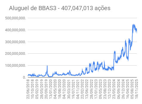 Este é um dado que acompanho diariamente, serve para que eu veja o “peso” extra que existe sobre estas ações. Normalmente – veja bem, normalmente … – um aumento na posição alugada pode significar um movimento de queda no papel. E o contrário também é verdadeiro, uma cobertura pode significar um movimento de alta.