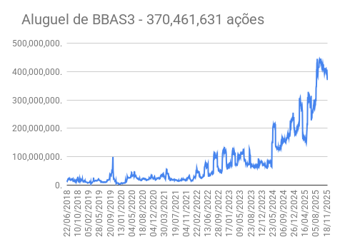 Este é um dado que acompanho diariamente, serve para que eu veja o “peso” extra que existe sobre estas ações. Normalmente – veja bem, normalmente … – um aumento na posição alugada pode significar um movimento de queda no papel. E o contrário também é verdadeiro, uma cobertura pode significar um movimento de alta.
