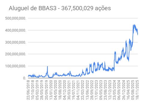 Este é um dado que acompanho diariamente, serve para que eu veja o “peso” extra que existe sobre estas ações. Normalmente – veja bem, normalmente … – um aumento na posição alugada pode significar um movimento de queda no papel. E o contrário também é verdadeiro, uma cobertura pode significar um movimento de alta.