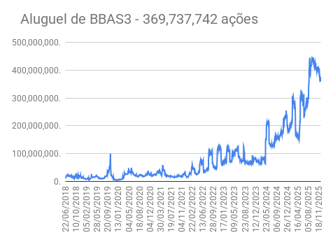 Este é um dado que acompanho diariamente, serve para que eu veja o “peso” extra que existe sobre estas ações. Normalmente – veja bem, normalmente … – um aumento na posição alugada pode significar um movimento de queda no papel. E o contrário também é verdadeiro, uma cobertura pode significar um movimento de alta.