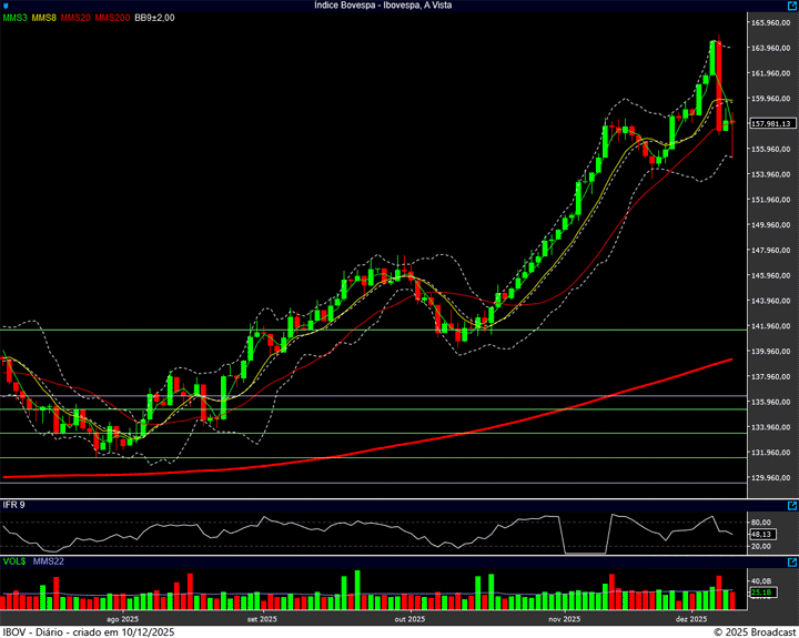 Agora, no campo mais amplo, o número da vez é o 157 mil pontos. Mas ele é um número mais ligado à semana. Se formos ampliar ainda mais, é o 153.500 pontos. É ele quem separa a atual tendência de alta de estar viva ou acabada.