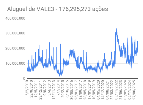Este é um dado que acompanho diariamente, serve para que eu veja o “peso” extra que existe sobre estas ações. Normalmente – veja bem, normalmente … – um aumento na posição alugada pode significar um movimento de queda no papel. E o contrário também é verdadeiro, uma cobertura pode significar um movimento de alta.