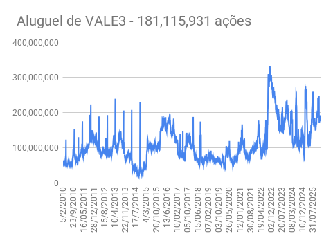 Este é um dado que acompanho diariamente, serve para que eu veja o “peso” extra que existe sobre estas ações. Normalmente – veja bem, normalmente … – um aumento na posição alugada pode significar um movimento de queda no papel. E o contrário também é verdadeiro, uma cobertura pode significar um movimento de alta.