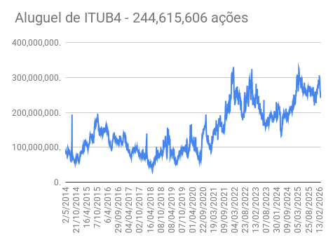 Este é um dado que acompanho diariamente, serve para que eu veja o “peso” extra que existe sobre estas ações. Normalmente – veja bem, normalmente … – um aumento na posição alugada pode significar um movimento de queda no papel. E o contrário também é verdadeiro, uma cobertura pode significar um movimento de alta.
