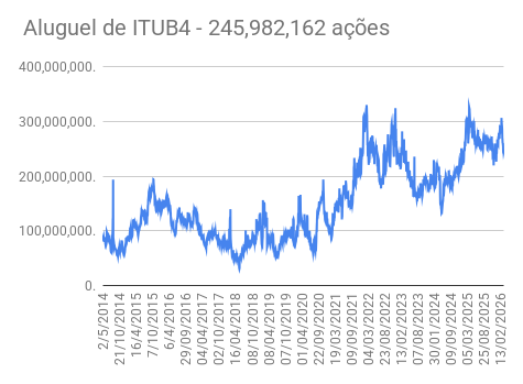 Este é um dado que acompanho diariamente, serve para que eu veja o “peso” extra que existe sobre estas ações. Normalmente – veja bem, normalmente … – um aumento na posição alugada pode significar um movimento de queda no papel. E o contrário também é verdadeiro, uma cobertura pode significar um movimento de alta.
