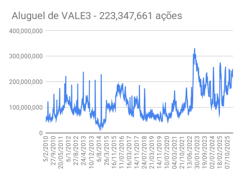 Este é um dado que acompanho diariamente, serve para que eu veja o “peso” extra que existe sobre estas ações. Normalmente – veja bem, normalmente … – um aumento na posição alugada pode significar um movimento de queda no papel. E o contrário também é verdadeiro, uma cobertura pode significar um movimento de alta.