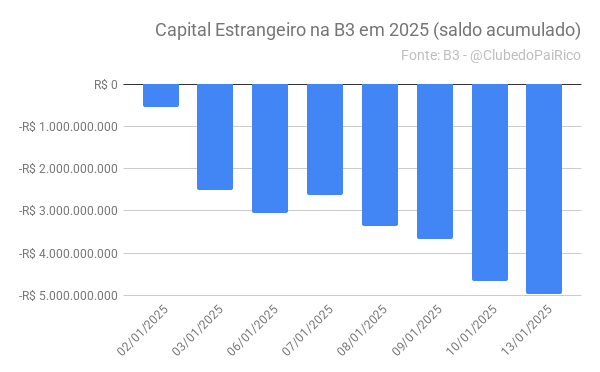 No ano de 2025, o saldo está negativo em R$4,969 bilhões.
