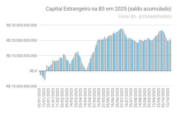 No ano de 2025, o saldo está positivo em R$20,144 bilhões.