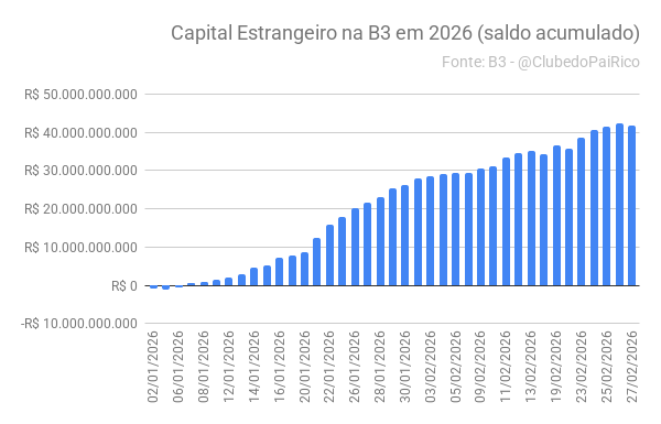 No ano de 2026, o saldo está positivo em R$41,709 bilhões.