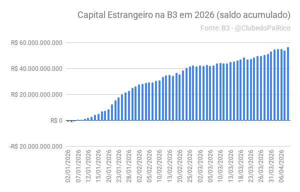 No ano de 2026, o saldo está positivo em R$56,518 bilhões.