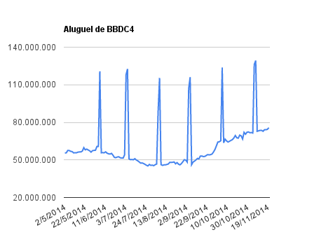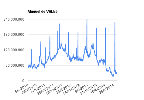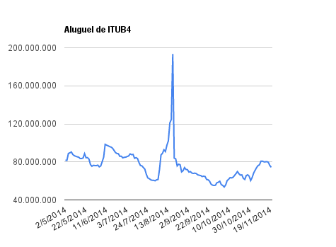 Este é um dado que acompanho diariamente, serve para que eu veja o “peso” extra que existe sobre estas ações. Normalmente – veja bem, normalmente … – um aumento na posição alugada pode significar um movimento de queda no papel. E o contrário também é verdadeiro, uma cobertura pode significar um movimento de alta.