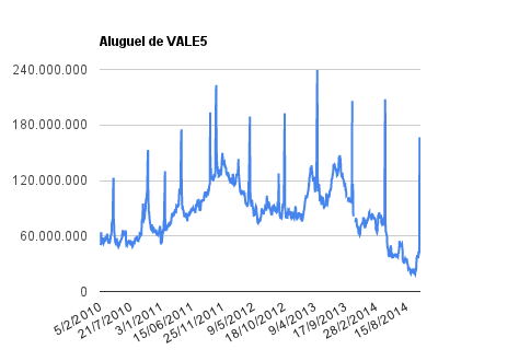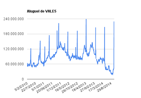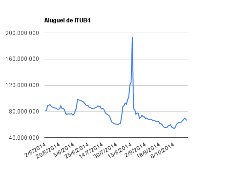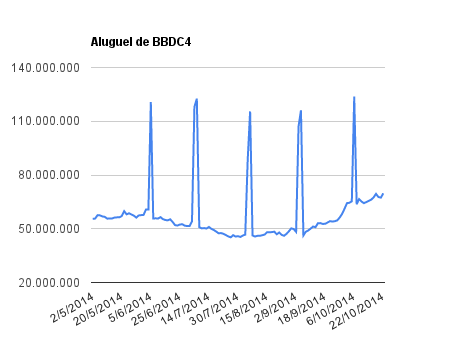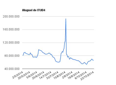 Este é um dado que acompanho diariamente, serve para que eu veja o “peso” extra que existe sobre estas ações. Normalmente – veja bem, normalmente … – um aumento na posição alugada pode significar um movimento de queda no papel. E o contrário também é verdadeiro, uma cobertura pode significar um movimento de alta.
