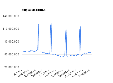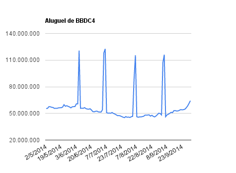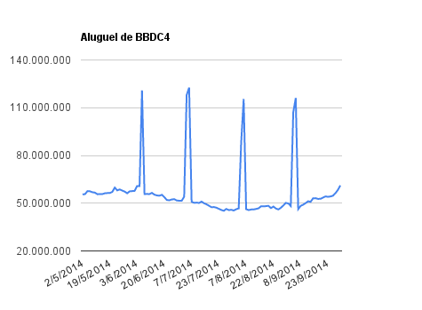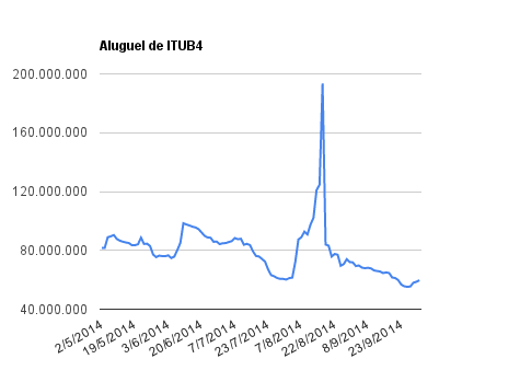 Este é um dado que acompanho diariamente, serve para que eu veja o “peso” extra que existe sobre estas ações. Normalmente – veja bem, normalmente … – um aumento na posição alugada pode significar um movimento de queda no papel. E o contrário também é verdadeiro, uma cobertura pode significar um movimento de alta.